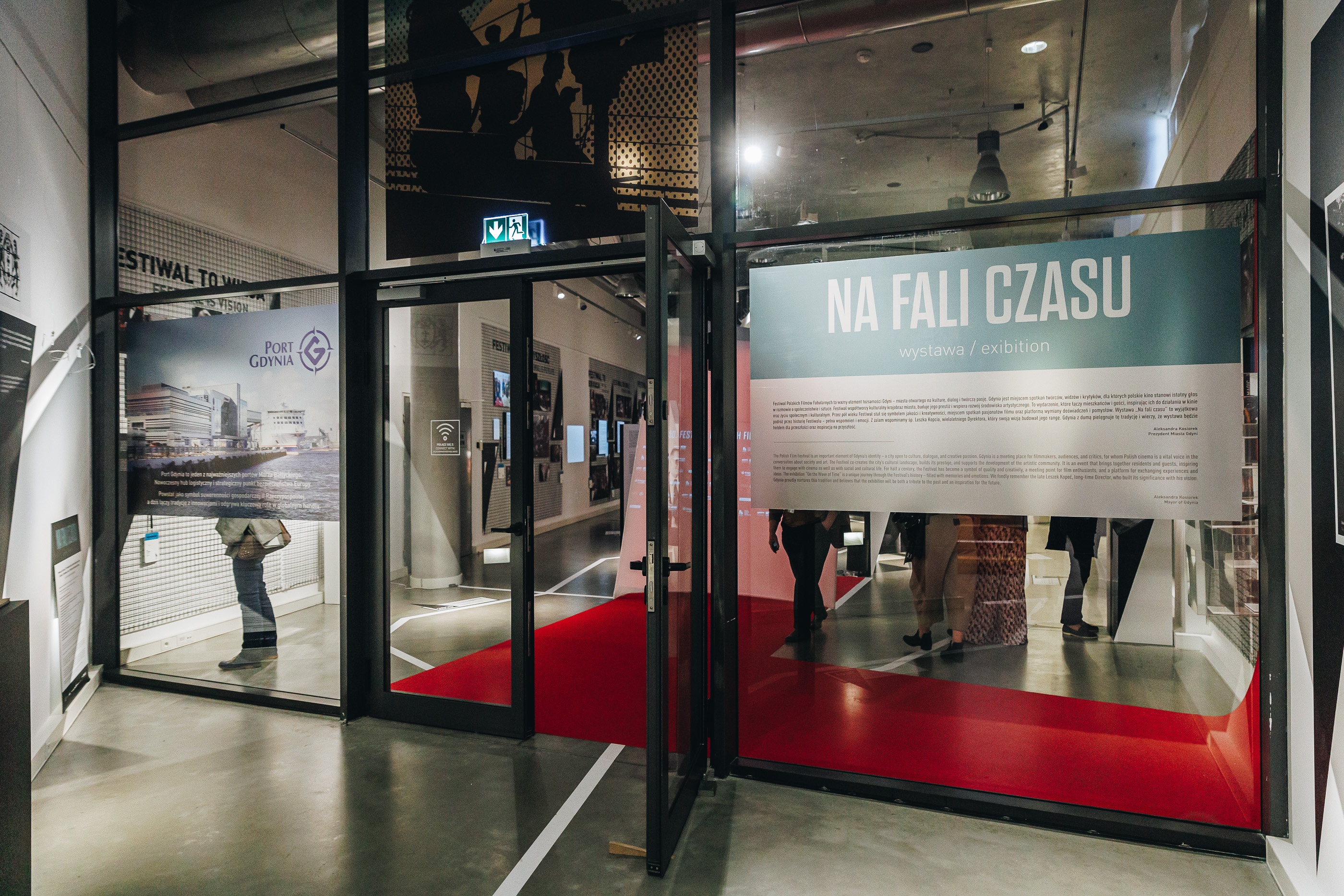 Wystawa „Na fali czasu” to narracyjna ekspozycja, prezentująca pięćdziesiąt lat historii najbardziej prestiżowej imprezy filmowej w Polsce: Festiwalu Polskich Filmów Fabularnych w Gdyni. Jest to opowieść, która rozpoczęła się pół wieku temu od pasji do kina pierwszego Dyrektora Festiwalu, Lucjana Bokińca i osób zgromadzonych wokół Dyskusyjnego Klubu Filmowego Żak w Gdańsku. Atmosfery rozmowy, muzyki, otwartości, zafascynowania filmem i jego twórcami. Oddolnej inicjatywy, która wynikała z potrzeby stworzenia miejsca pozwalającego na spotkanie, promocję młodego pokolenia twórców, konfrontację z publicznością. Po długiej drodze od Sopotu, Gdańska, aż do Teatru Muzycznego w Gdyni, Festiwal niezmiennie szuka aktualnego spojrzenia na polskie kino, będąc kluczowym miejscem dla branży filmowej i kolejnego pokolenia widzów.