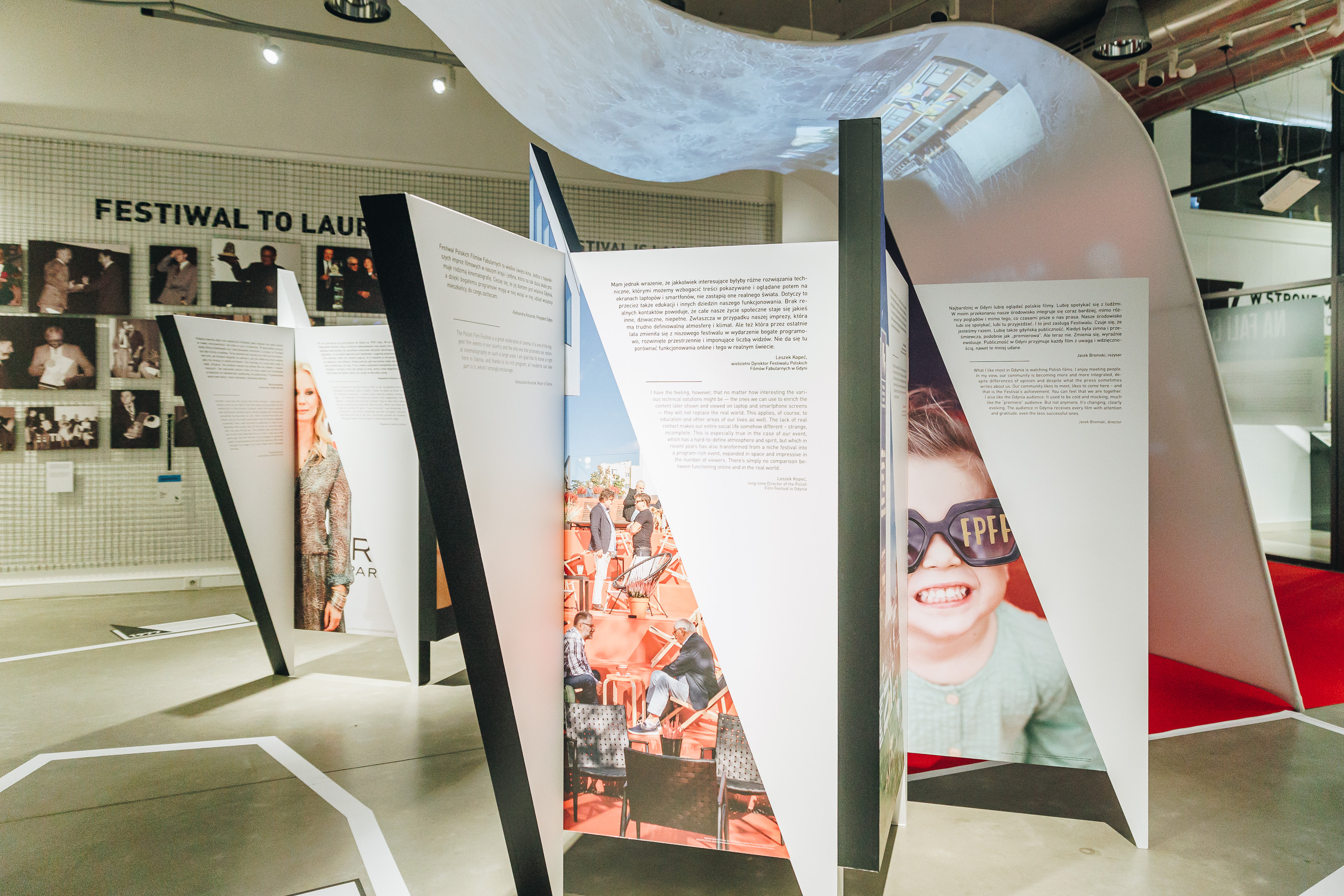 „Głównym założeniem było stworzenie ekspozycji, która może mieć wiele odsłon. Wystawa składa się z dwunastu modułów, każdy poświęcony jednemu dużemu zagadnieniu, które razem układają się w szeroką i przekrojową opowieść o Festiwalu. Zależało nam na tym, by dzięki takiej formule przedłużyć świętowanie 50-lecia i by w przyszłym roku móc udostępniać poszczególne moduły i tworzyć z nich różne warianty wspomnień o FPFF” – mówi Agata Kozierańska-Burda, Dyrektor Zarządzająca Pomorskiej Fundacji Filmowej w Gdyni, pomysłodawczyni wystawy.