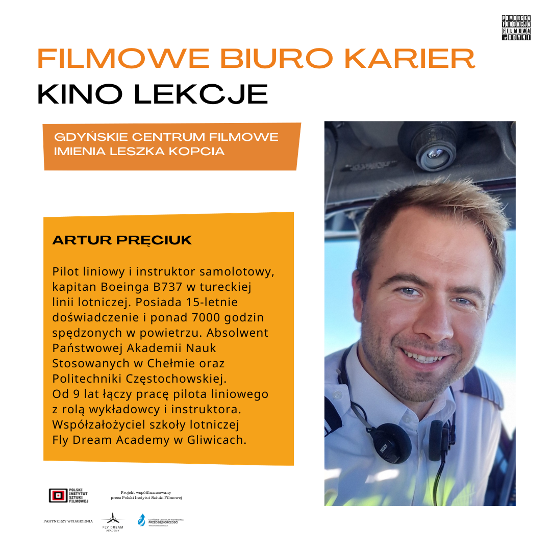 21 kwietnia 2026 o godz. 10:00 zapraszamy na wydarzenie wokół zawodu pilota samolotów. Naszym gościem będzie Artur Pręciuk – pilot liniowy, kapitan Boeinga 737. Instruktor samolotowy, współzałożyciel, członek zarządu i kierownik bezpieczeństwa Fly Dream Academy w Gliwicach. Posiada 15-letnie doświadczenie, w powietrzu spędził ponad 7000 godzin. Ukończył studia w specjalności Pilotaż Samolotowy w Państwowej Akademii Nauk Stosowanych w Chełmie oraz na kierunku Inżynieria Bezpieczeństwa i Higieny Pracy na Politechnice Częstochowskiej. Od 9 lat łączy pracę pilota liniowego z rolą wykładowcy i instruktora – posiada najwyższe uprawnienia instruktora szkolenia ogólnego (FI/FI). Przeszedł wszystkie szczeble kierownicze w Organizacji Szkolenia Lotniczego (ATO), w tym stanowiska odpowiedzialne za jakość szkolenia, standardy operacyjne i rozwój kadry. Przez 8 lat pracował dla polskiego przewoźnika charterowego. Aktualnie zasiada za sterami Boeinga 737, pełniąc funkcję kapitana w tureckiej linii lotniczej, obsługując zarówno loty krajowe, jak i międzynarodowe.
